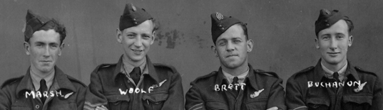 Godfrey Woolf came from 106 Squadron on 10 September 1943 and was killed on 1/2 January 1944 when flying with the Mooney crew. He had been a survivor of Black Thursday when the Mooney crew abandoned their aircraft and took to their parachutes (see Caterpillar Club page).