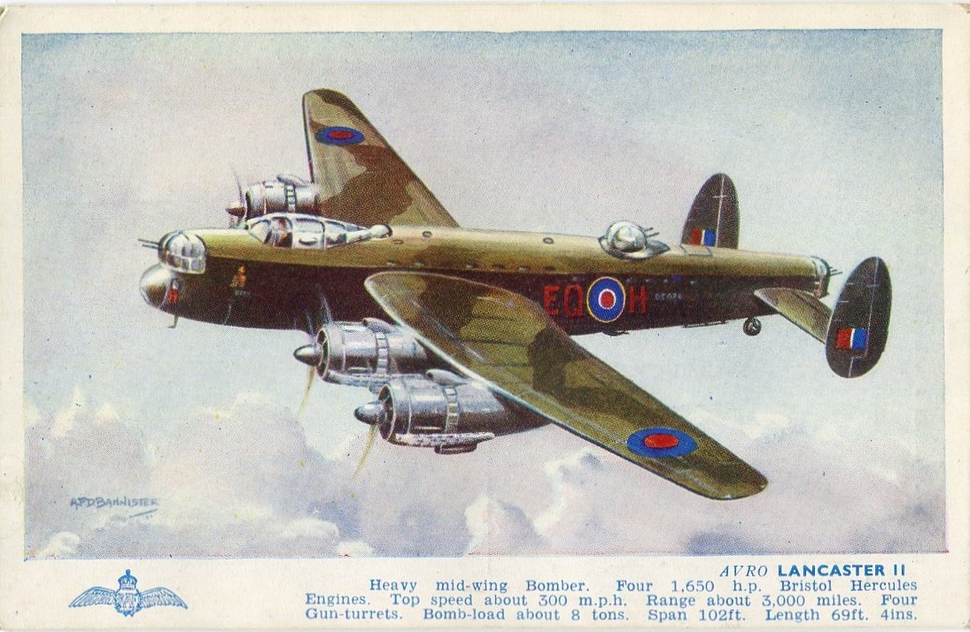 We have recently been working with the logbook, prisoner of war log, and other papers of John Henry O’Neill, a bomb aimer with 405 Squadron, who was shot down on 3 June 1944. There is a great deal of interest in these papers, but one small item caught my eye today. Tucked into the prisoner of war log is a yellowing newspaper clipping, describing the end of the last Lancaster on active duty on 20 October 1956. Also tucked into the logbook is the card of the Lancaster included on this post. Clearly, the aircraft was of great significance to John O’Neill. There is also a drawing of a Lancaster in his prisoner of war log.