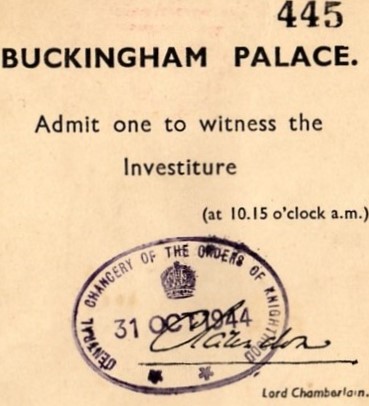 Surviving congratulatory telegrams about a medal award, sent by one’s old Commanding Officer, seem to be somewhat rare. George Granger’s family must have been enormously proud of the high honour which George had received when he was awarded the DFM because they carefully preserved the telegram, together with the invitation to the investiture and one of the tickets to Buckingham Palace.