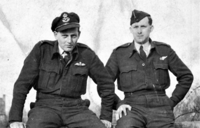 Photograph shows Hal, left, and Keith Saladine, his bomb aimer, a fellow Australian. (Mettam family photograph)