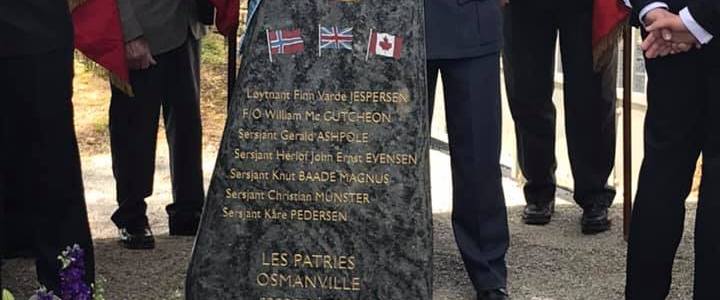 We have been sent this lovely photograph of the D-Day commemorations for the Jespersen crew, who were shot down and all killed on 6 June 1944. The memorial is north-west of Osmanville in the churchyard of St Clements. With thanks to David Wold, who accompanied the 97 year old Norwegian veteran Trygve Hanse from Canada to the ceremony. Hanse was a sailor on the destroyer Stord on the morning of 6 June 1944.